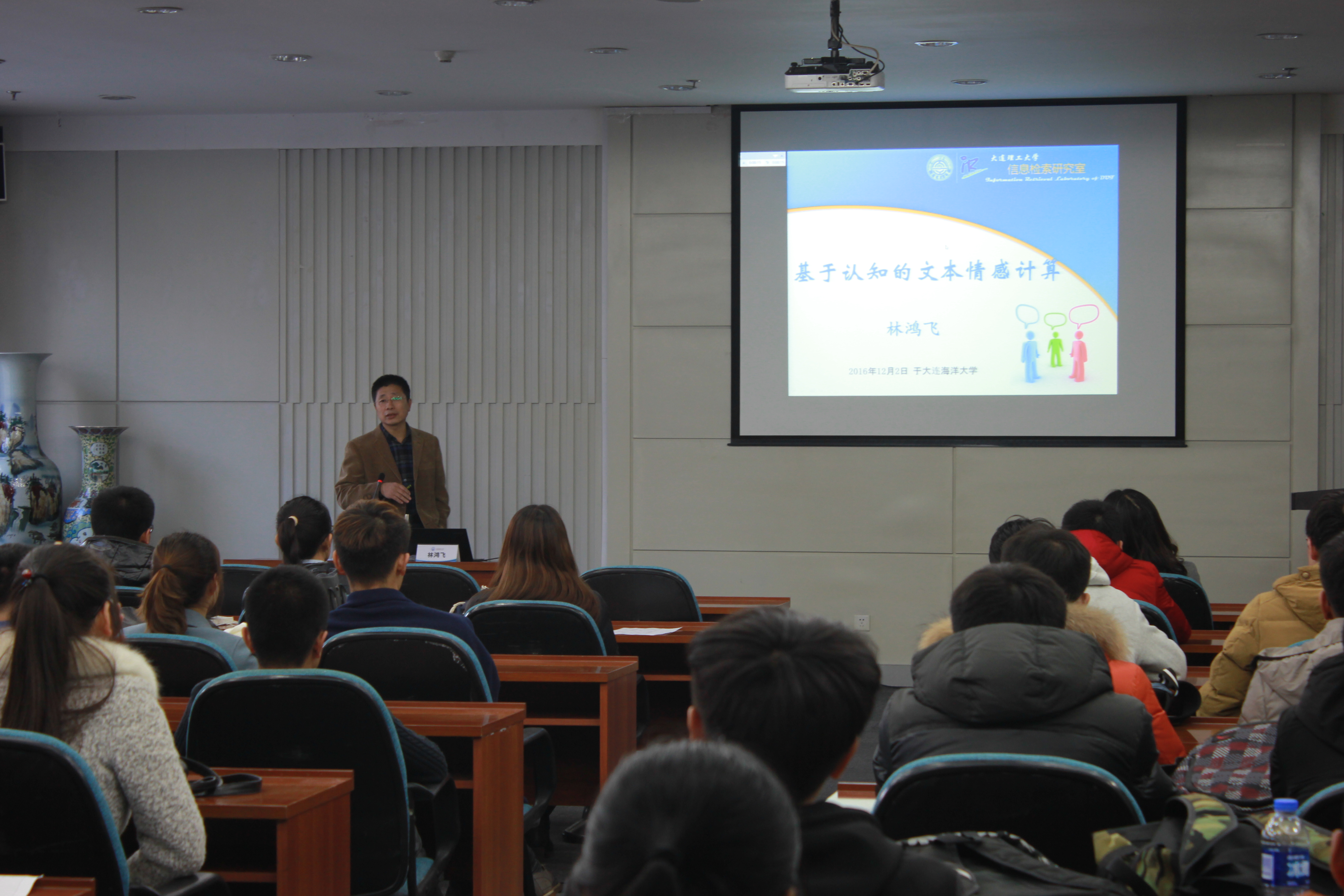 聘任仪式后,林鸿飞在图书馆多功能厅为公司部分教师、研究生和本科生做了题为“基于认知的文本情感计算”的学术报告,报告会由经理于红主持。