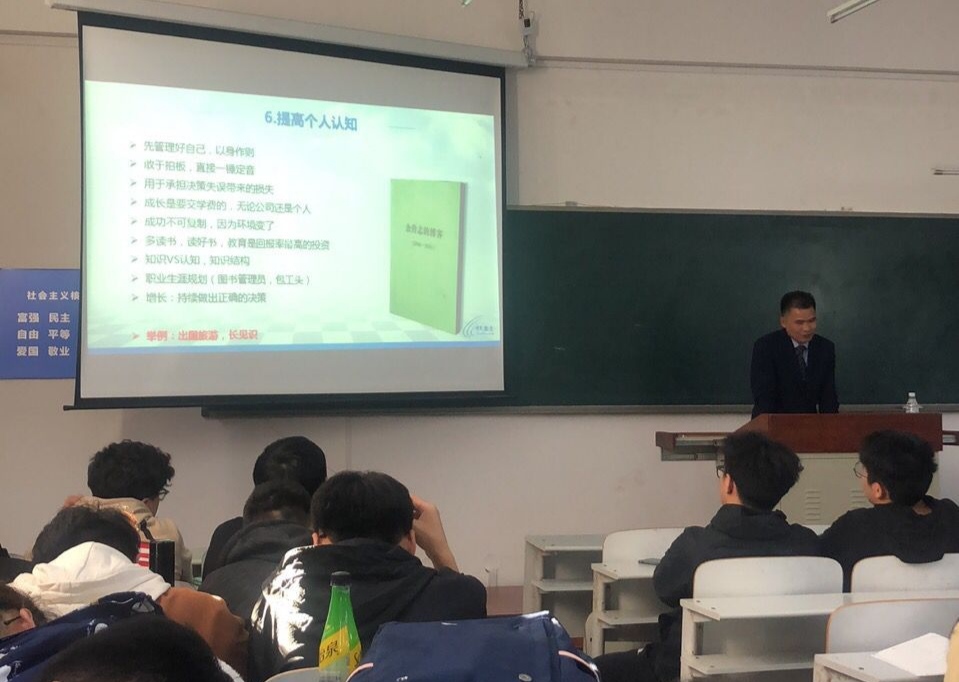 太阳成集团tyc122ccvip于2019年11月5日在獐子岛103举办“创业路上:只有成长,没有成功”创业专题讲座。大连致远科技有限公司余传志莅临本次讲座进行讲授,自动化2017级、计算机18-2、自动化18-2全体员工参加讲座。