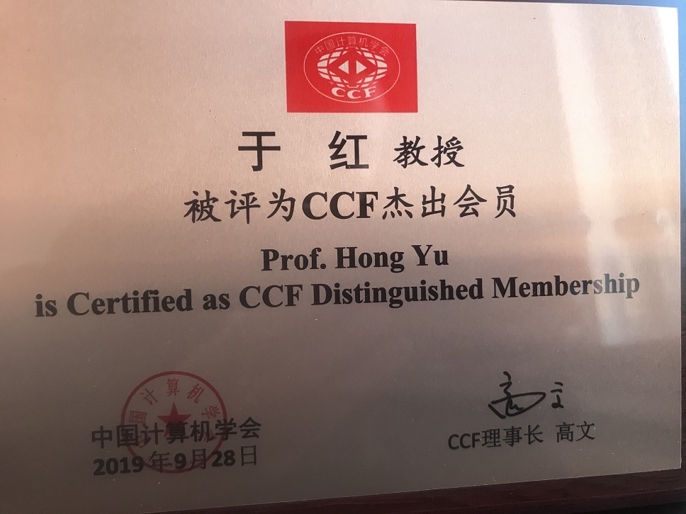 CCF是中国计算机领域知名的学术团体,CCF杰出会员旨在表彰在计算领域取得突出成就、具有至少15年专业经验、至少5年CCF连续会龄高级会员,每年仅有不超过千分之三的会员当选CCF杰出会员。2019年评审中,全国仅有86位高级会员晋升为杰出会员。