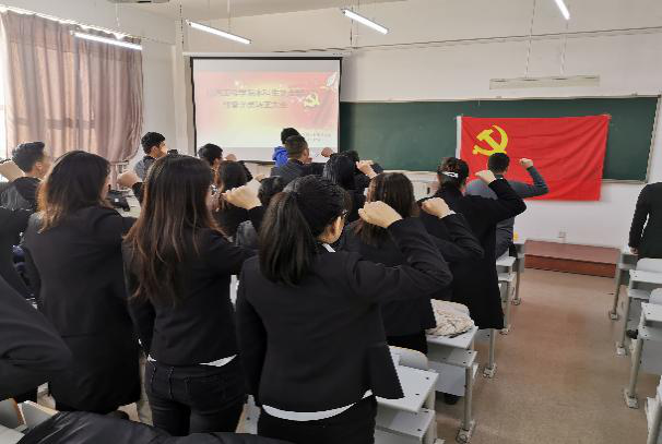 12名发展对象依次宣读入读志愿书,7名预备党员依次宣读转正申请书。经支部大会研究决定,接收12名同志为预备党员,6名同志按期转正,1名同志因有一科不及格课程延期转正。最后大家在党旗下重温了入党誓词。