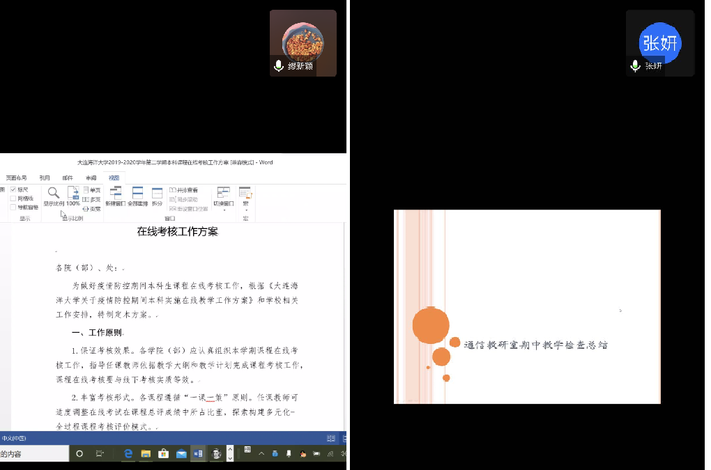 5月13日下午,公司利用腾讯会议软件召开期中教学检查交流会暨在线教学工作会,公司班子成员,各教研室、中心主任,专业负责人参加在线会议。会议由副经理缪新颖主持。