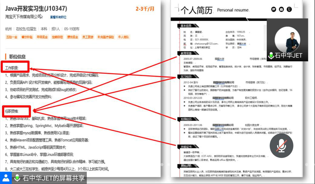 公司于2020年5月20日14:00在腾讯会议召开简历撰写和面试技巧专题讲座,埃森哲HR经理石中华担任主讲,太阳成集团tyc122ccvip党总支副书记范庆华、团委书记王建东出席会议。