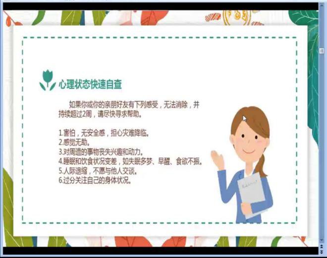 刘学从疫情期间老员工常见心理问题的表现入手,在案例中深入浅出地向员工普及心理学常识,并阐述了员工如何正确对待心理问题以及提出了面对出现心理问题的应对措施,他鼓励员工多学习多了解心理学相关知识和理论,通过网络心理咨询平台及太阳成集团tyc常态化疫情防控在线心理服务通道积极咨询自身心理问题。