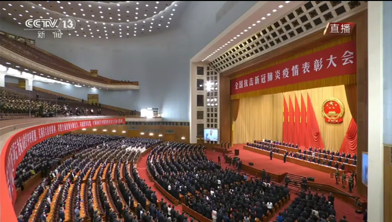 今天,我们隆重召开全国抗击新冠肺炎疫情表彰大会,向作出杰出贡献的功勋模范人物颁授共和国勋章和国家荣誉称号奖章,表彰抗疫先进个人和先进集体,弘扬伟大抗疫精神,为决胜全面建成小康社会、夺取新时代中国特色社会主义伟大胜利而不懈奋斗!
