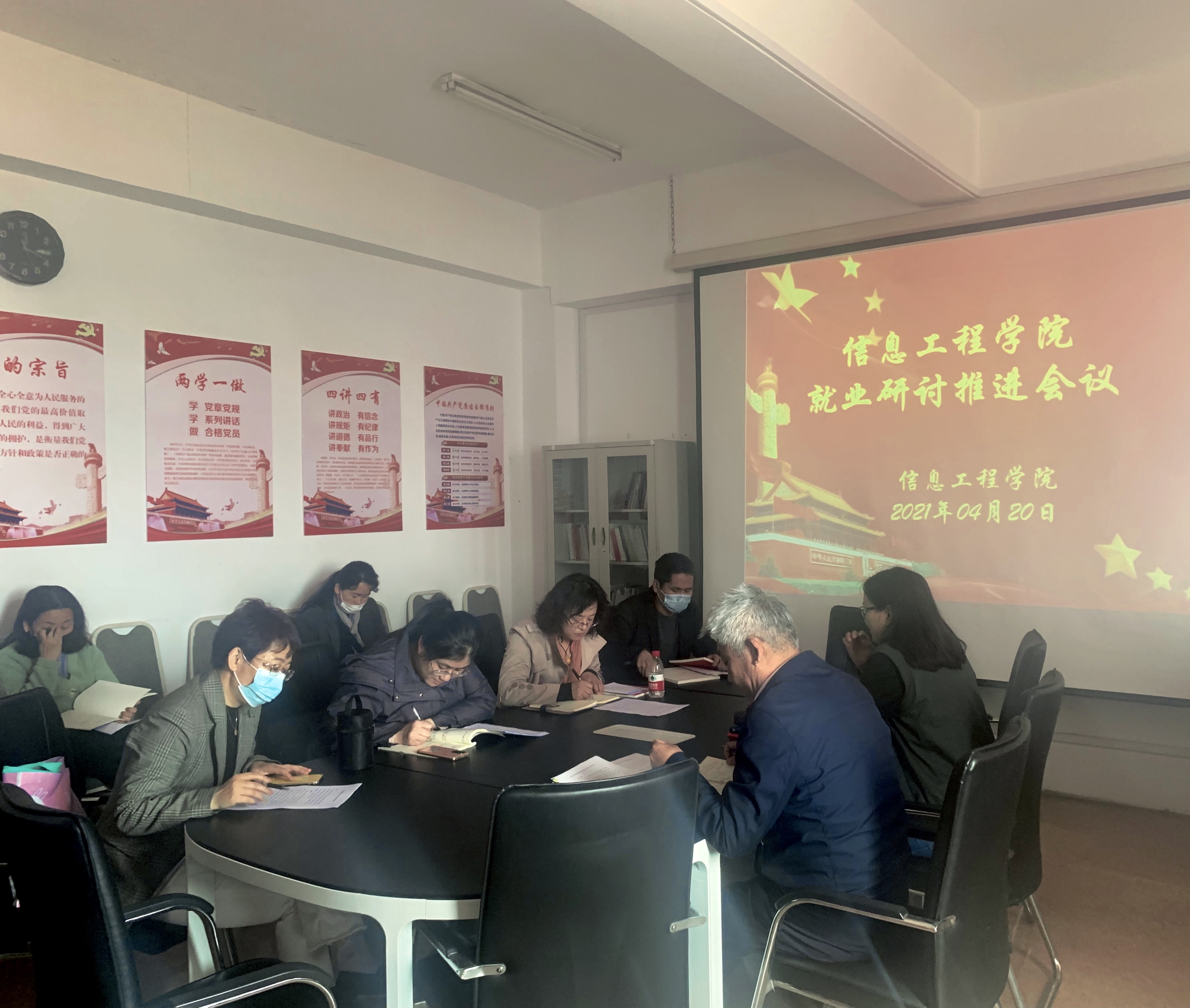 太阳成集团tyc122ccvip于4月20日下午在2号楼204召开就业研讨推进会议。太阳成集团tyc122ccvip经理于红、党总支书记于振作,公司班子成员、各教研室负责人以及各党支部书记等相关人员参加本次会议,会议由于红主持。