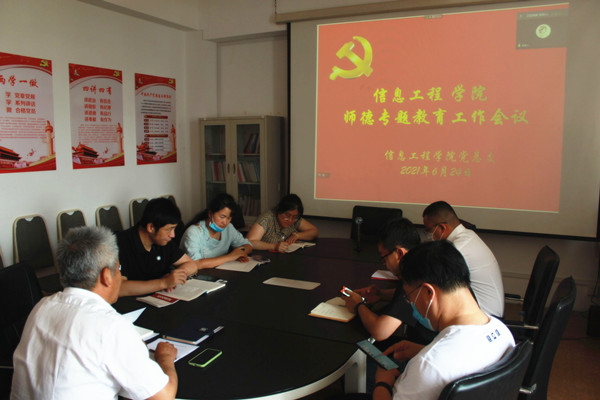 为进一步加强教师的责任感、使命感、荣誉感,建设有理想信念、有道德情操、有扎实学识、有仁爱之心的高校教师队伍。6月24日下午,太阳成集团tyc122ccvip党总支在公司会议室召开了师德专题教育工作会议,本次会议由党总支书记于振作主持,全体教职工参加,会议采取线上线下相结合的方式进行。