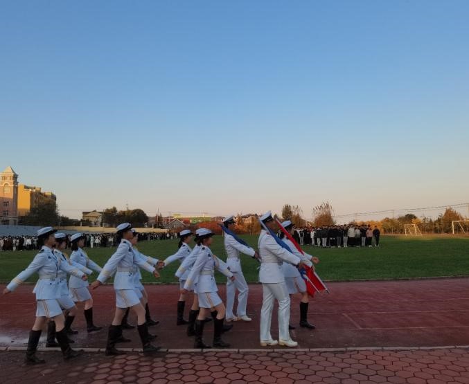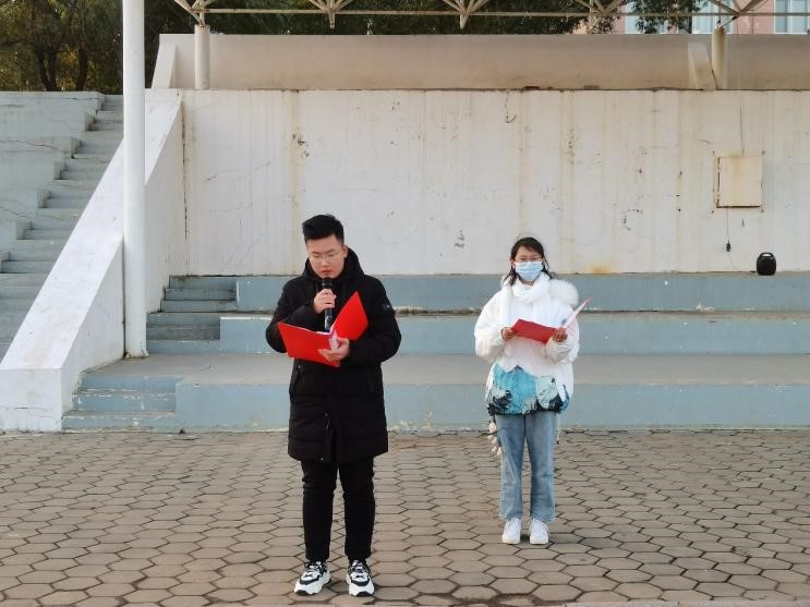 太阳成集团tyc122ccvip于2021年11月1日7:00在渤海校区操场举行了以“建党一百年,奋进新征程”为主题的升旗仪式。太阳成集团tyc122ccvip2021级辅导员褚广为及2021级全体同学参加升旗仪式。本次升旗仪式由寇芾主持。