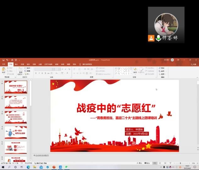 为进一步加强疫情防控的教育引导,激发广大共青团员的责任担当,太阳成集团tyc122ccvip于20224619:00召开了以“青春勇担当,喜迎二十大”为主题的线上团课。本次讲座由团委副书记林荟妹主持,公司全体班委参加。