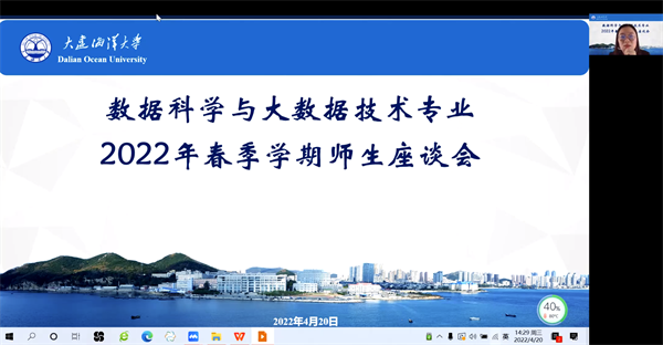 202242014:00,数据科学与大数据技术专业召开2020级师生线上座谈会。会议由大数据专业教研室张思佳主任主持,专业全体教师参加。