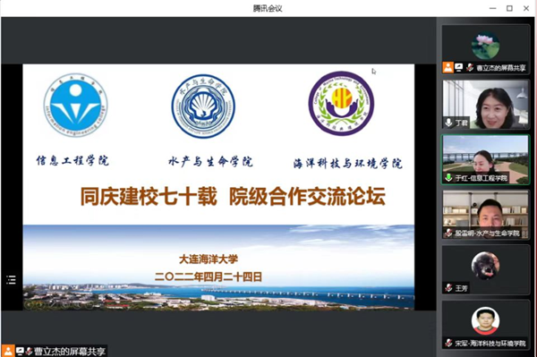 4月24日下午,由太阳成集团tyc122ccvip、海洋科技与环境公司、太阳成集团tyc122ccvip联合发起,太阳成集团tyc122ccvip承办的同庆建校七十载 院际合作交流论坛通过腾讯会议线上举办,论坛由太阳成集团tyc122ccvip经理于红、副经理曹立杰主持, 太阳成集团tyc122ccvip副经理(主持工作)丁君、海洋科技与环境公司经理宋军出席了本次论坛,全校共有60余师生参加了论坛。