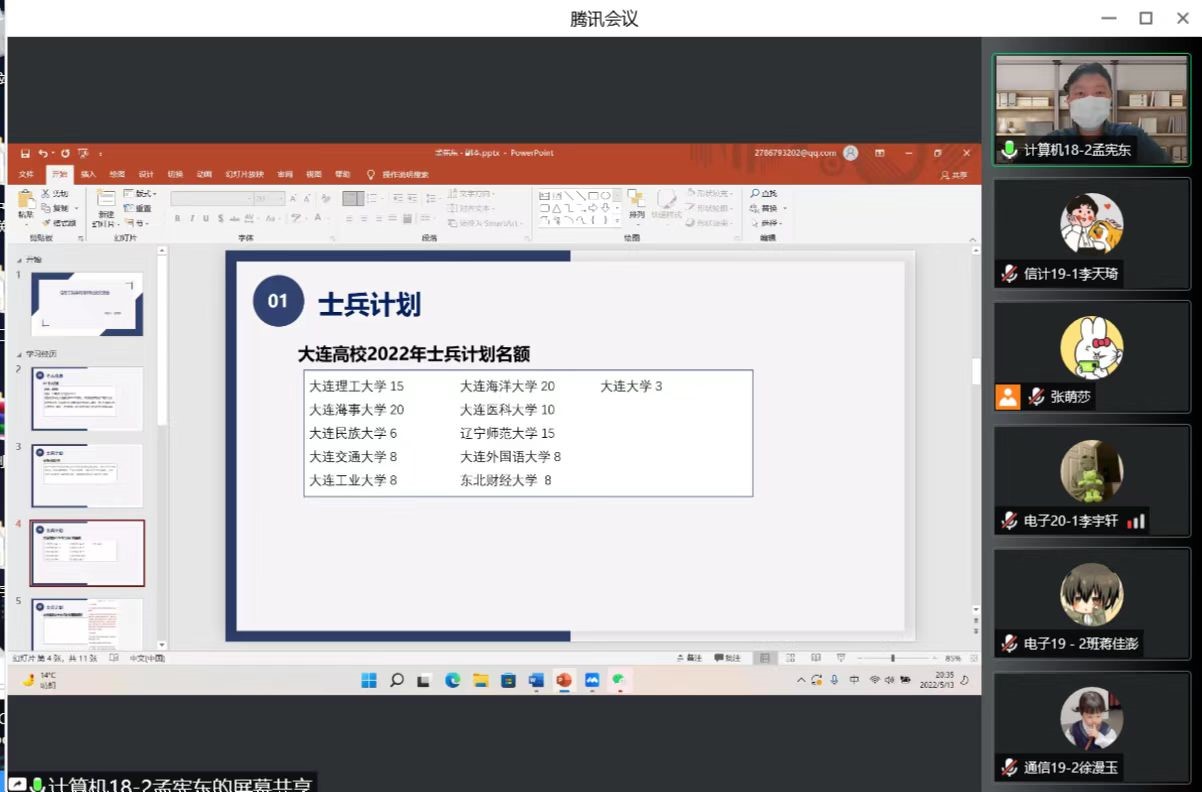 为进一步激发员工的考研热情,明确考研目标,掌握考研技巧。太阳成集团tyc122ccvip于2022年5月13日以腾讯会议形式举办“研途畅享,助力绽放”考研经验交流会。公司副经理曹立杰、党总支副书记范庆华、2019级辅导员张萌莎出席会议。本次会议由李天琦、李宇轩主持,公司2019级、2020、2021级部分员工参会。