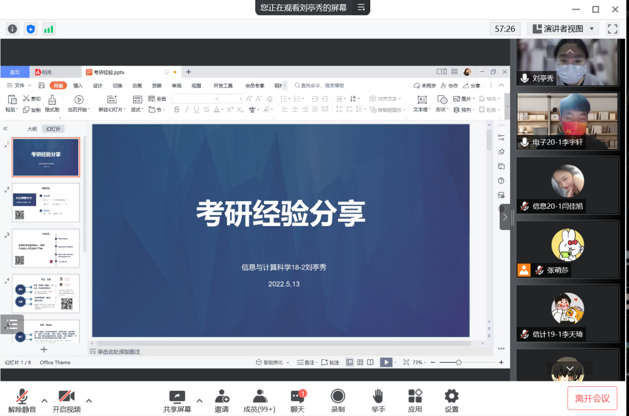 本次考研经验交流会的举办,不仅给立志考研的同学指引了方向,也使同学们对考研过程有了具体、清晰的认识,为以后的考研理清了头绪,增强了考研的信心。同时,这次交流会也为公司营造了浓郁的考研学习氛围,有力地推动了公司学风建设。
