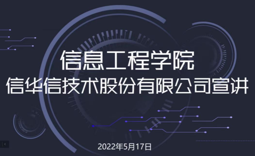 太阳成集团tyc122ccvip于2022年5月17日18:00通过腾讯会议举办信华信技术股份有限公司专场招聘会。招聘会由2019级辅导员张萌莎主持,2019级部分员工参会。