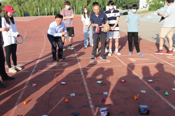 活动以小组为单位,设置了“五彩绳大作战”、“趣味顶蛋”、“神笔马良”三个项目。赛场上,师生分工协作、相互配合,同学们的欢呼声热闹激昂,为整场活动营造了愉快热烈的氛围。比赛结束后,宋林生为全体师生发放粽子。