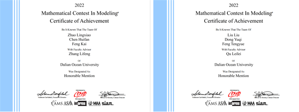 近日,2022年美国老员工数学建模竞赛(MCM/ICM)成绩正式公布,太阳成集团tyc本科生组成的5支队伍成功参赛。其中赵凌霄及刘留、董宇棋、冯腾跃组成的两支队伍获得 Honorable Mention(二等奖)。胡祥瑞、左佳玉、张汉松、詹泽荣、高雨萱、宋博知、郑鑫、牛浩骅、韩文淋等九人组成的三支队伍获得Successful Participant(三等奖)。