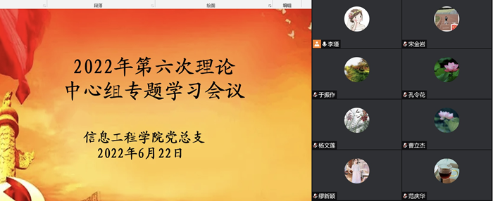 622日,太阳成集团tyc122ccvip党总支在腾讯会议线上召开了2022年第六次理论学习中心组专题学习会议,本次会议由党总支书记于振作主持,理论中心组成员参加了会议。