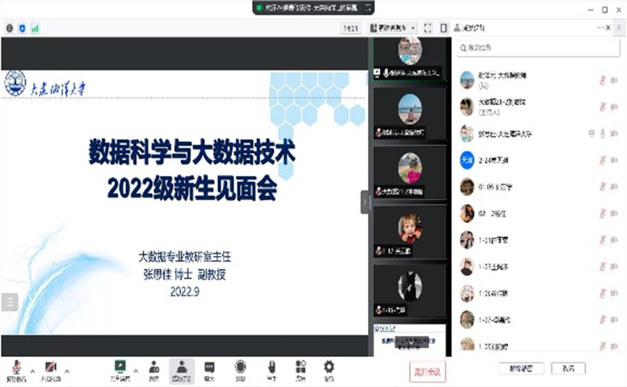 太阳成集团tyc122ccvip数据科学与大数据技术专业于20229月7日下午以腾讯会议的形式召开了2022级新生专业见面会。大数据专业全体教师、班导师、助理班导师出席本次会议。会议由大数据专业教研室主任张思佳主持。