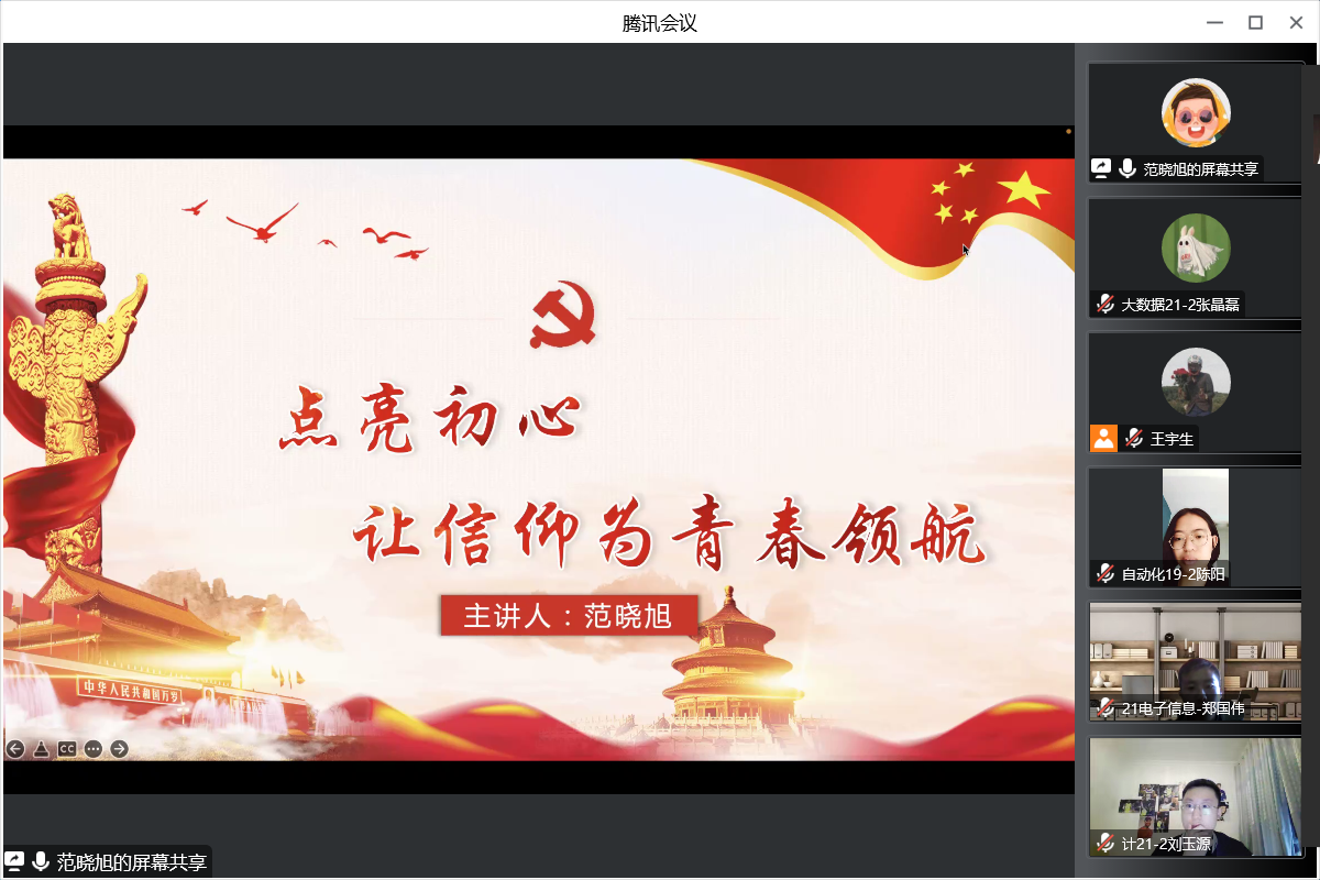 太阳成集团tyc122ccvip于20221024日中午12:00以线上腾讯会议的形式召开了“点亮初心,让信仰为青春领航”的主题报告。太阳成集团tyc122ccvip本科生党支部书记范晓旭以及第十六期入党积极分子参加了本次主题报告。会议由员工会组织部部长王宇生主持。