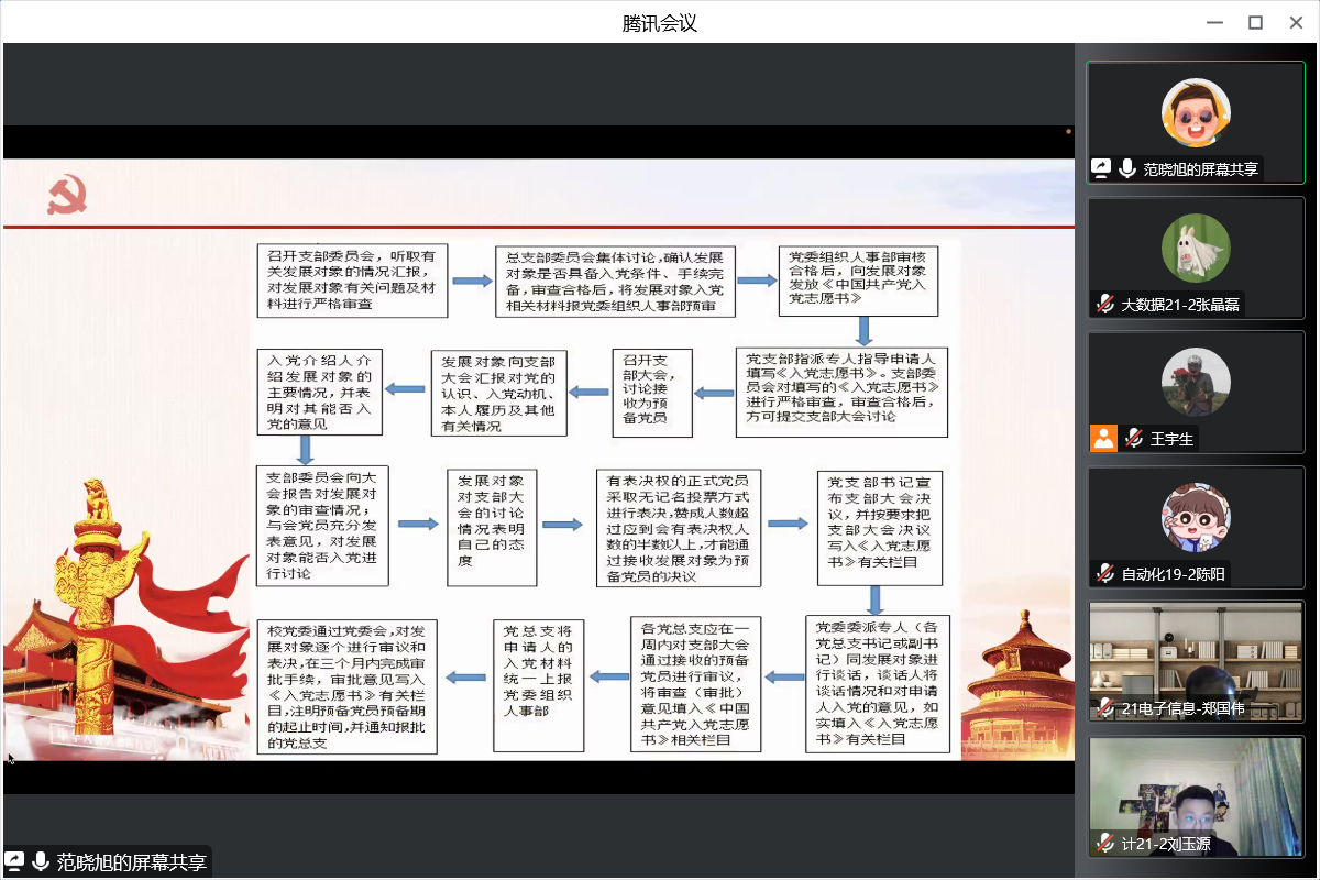 会议伊始,范晓旭介绍了积极分子的入党审查流程和入党的全过程。要求广大积极分子,一定要认真开展入党积极分子培养阶段的学习,提升自我,以实际行动向党组织靠拢,争取早日成为一名光荣的共产党员。