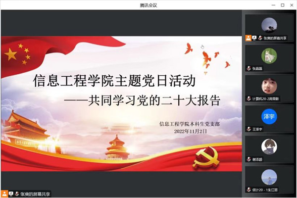 2022112日,太阳成集团tyc122ccvip本科生党支部开展“共同学习党的二十大报告”主题党日活动。本次活动由张爽主持,公司党委副书记范庆华、各年级辅导员以及全体员工党员出席活动。