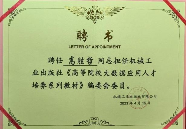 2023年4月15日下午,机械工业出版社《高等院校大数据应用人才培养系列教材》编委会委员受聘仪式在公司图书馆多功能厅举行,机械工业出版社社长助理时静社长参加此次受聘仪式,仪式由机械工业出版社计算机分社曹新宇社长主持。公司于红教授受聘为《高等院校大数据应用人才培养系列教材》编委会主任、高胜哲教授受聘为《高等院校大数据应用人才培养系列教材》编委会委员、张思佳副教授受聘为《高等院校大数据应用人才培养系列教材》编委会副秘书长。