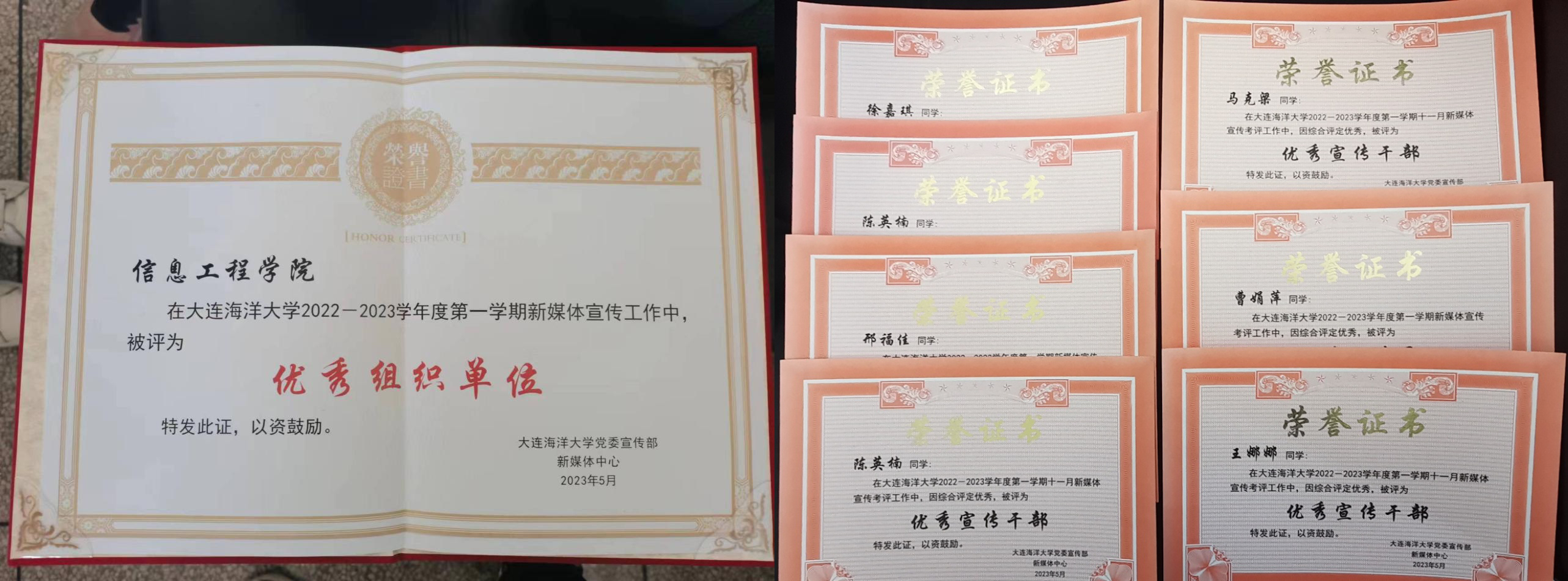 2022年5月,在大连海洋2022-2023学年度第一学期新媒体工作中,太阳成集团tyc党委宣传部评定太阳成集团tyc122ccvip为“优秀组织单位”。