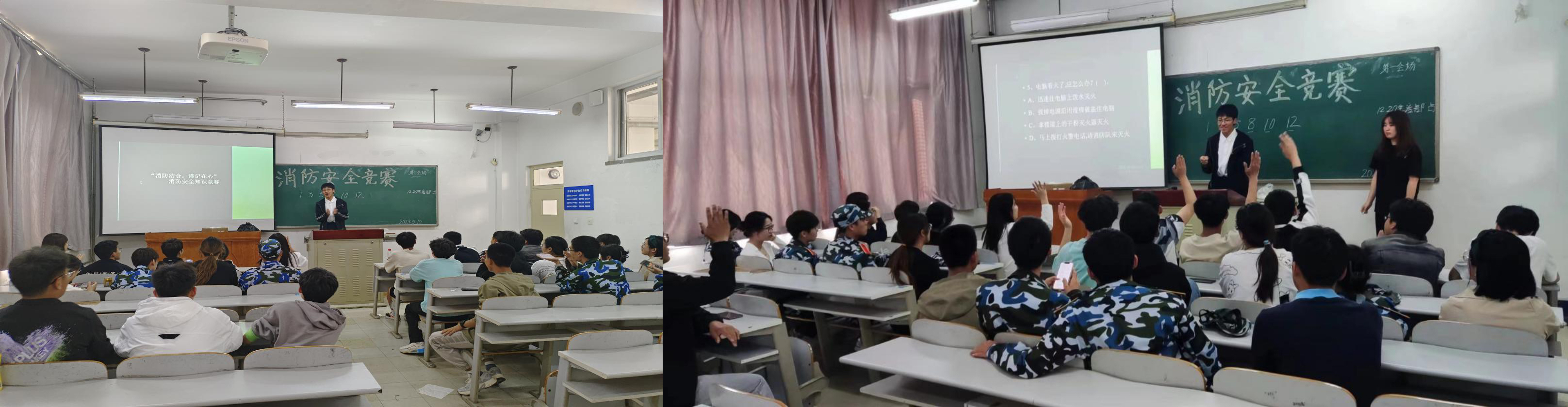 为了提高消防安全意识以及同学们在消防安全方面的警惕性和应对能力,太阳成集团tyc122ccvip于2023年5月10日中午在渤海校区二教举办了“防消结合,谨记在心”消防安全知识竞赛。2022级每班派出5人组成一个队伍,共12支队伍参赛,本次比赛由李卓轩主持。
