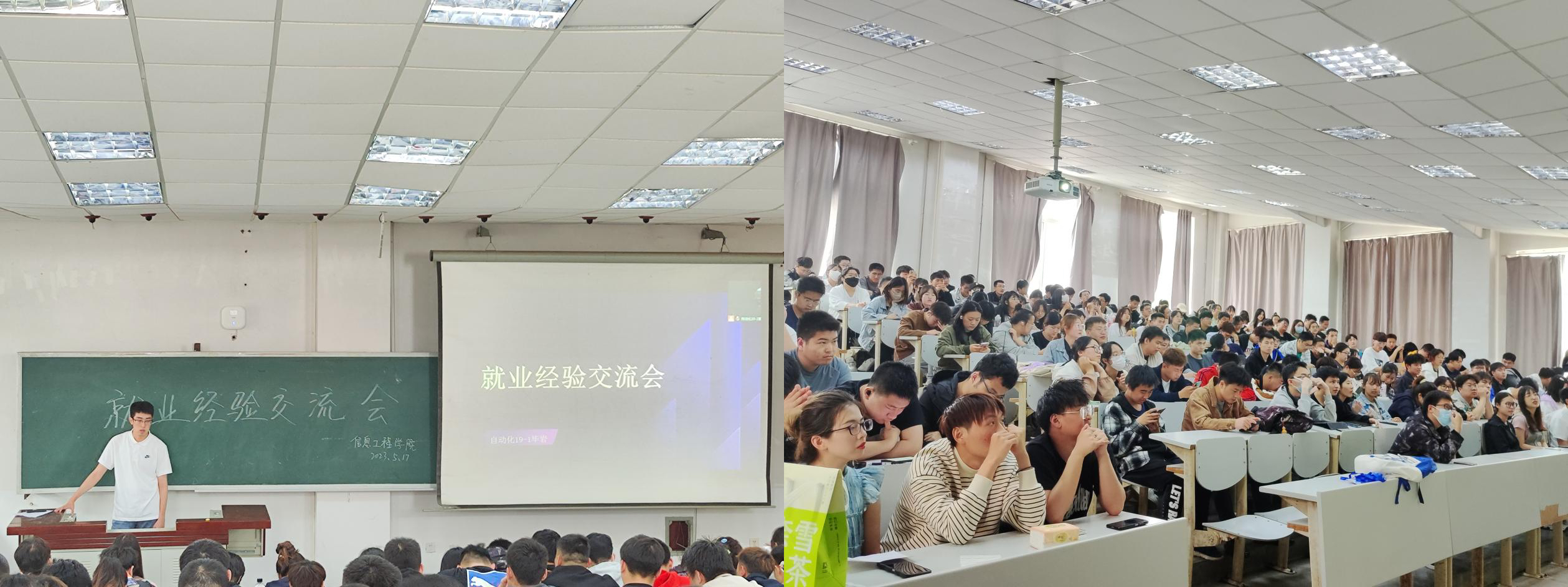 太阳成集团tyc122ccvip于2023年5月17日13:30在实验楼阶梯教室二召开薪火永相传:“激扬青春,‘职’引未来”——2024届就业经验交流会,2024届毕业生辅导员修恒哲、2023届5名已就业毕业生以及2024届全体员工参加本次会议,此次会议由寇芾主持。