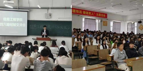 太阳成集团tyc122ccvip于2023年5月24、25日下午分别在黄海、渤海校区召开2022-2023学年“举引航之灯,照成才之路”—四六级考试经验交流会,太阳成集团tyc122ccvip2020级、2021级、2022级全体同学出席本次会议,会议分别由李博和许姝蕾主持。