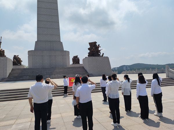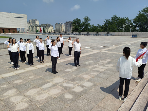 参观结束后,大家来到抗美援朝纪念塔前,在党委书记于振作的带领下,全体党员面向党旗举起右拳庄严宣誓,既重温了入党誓词,也向英雄先烈们庄严承诺,为党和人民的事业,为中华民族伟大复兴而奋斗终生。