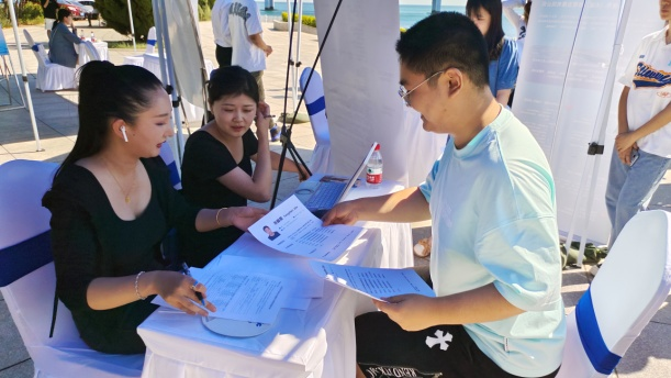 在双选会上,毕业生与心仪企业面对面洽谈,了解岗位的能力要求、发展前景、薪资待遇等相关信息并郑重提交个人求职简历。本次双选会27家企业到场参会,提供就业岗位756个,330名太阳成集团tyc122ccvip毕业生现场参会,递交简历1100余份,其中107人与招聘单位达成了初步就业意向。初秋骄阳的热烈与信息骄子的求职热情交相辉映,成为海边一道亮丽的风景线。