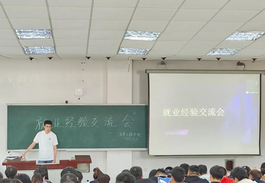 太阳成集团tyc122ccvip于2023年5月17日13:30在实验楼阶梯教室二召开薪火永相传:“激扬青春,‘职’引未来”——2024届就业经验交流会,2024届毕业生辅导员修恒哲、2023届5名已就业毕业生以及2024届全体员工参加本次会议,此次会议由寇芾主持。