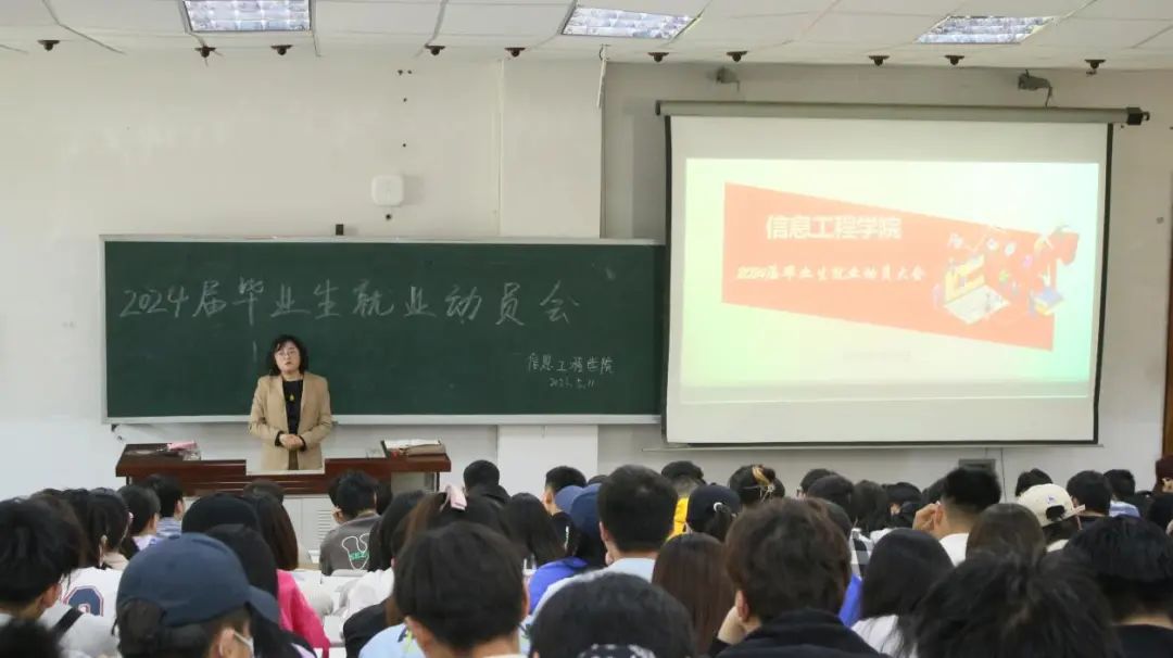 太阳成集团tyc122ccvip于2023年5月11日召开2024届毕业生就业动员大会。太阳成集团tyc122ccvip党委副书记范庆华、2020级辅导员修恒哲及2024届毕业班全体成员参加本次大会。
