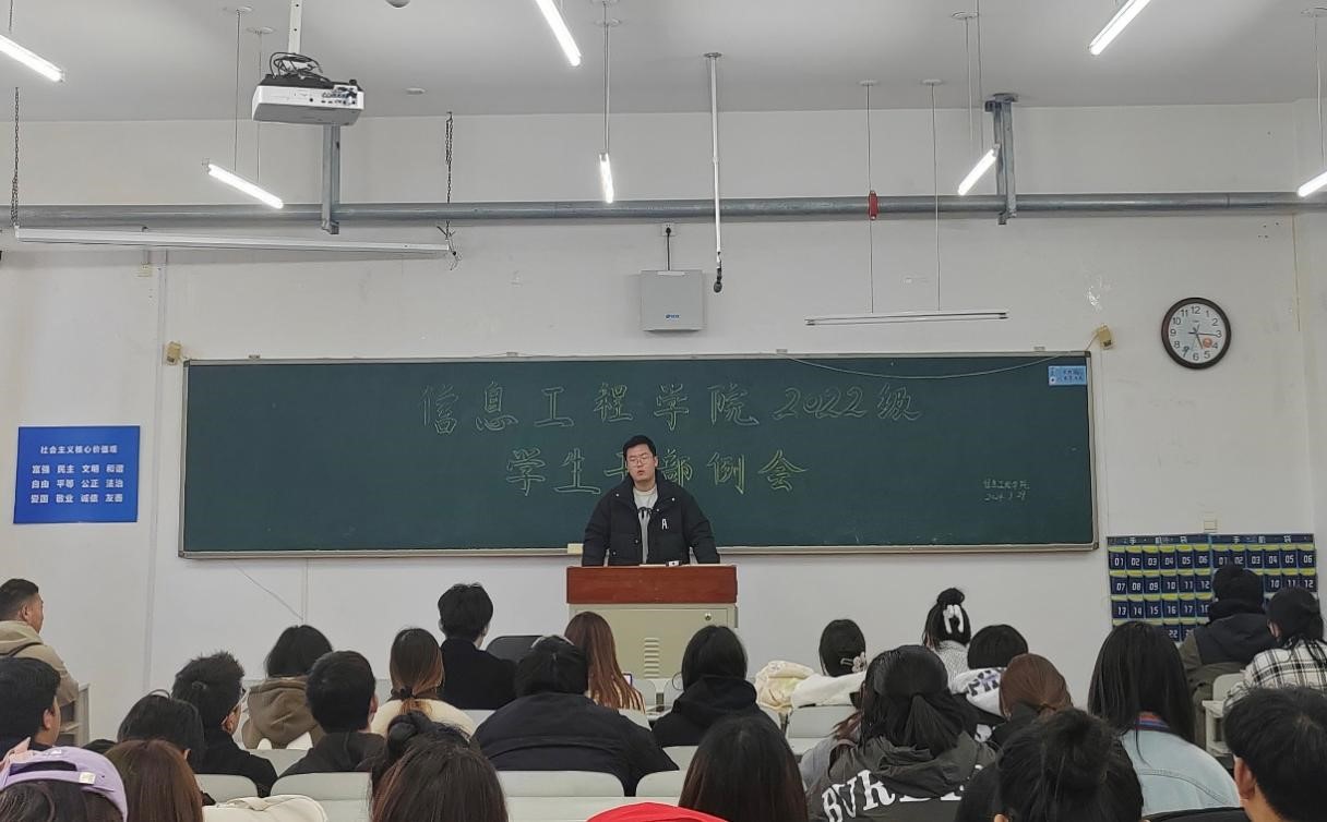 太阳成集团tyc122ccvip于2024年3月29日17:00在獐子岛教学楼召开太阳成集团tyc122ccvip2022级员工干部例会,2021级主席部长团、2022级全体员工干部参会。会议由李勃瑞主持。