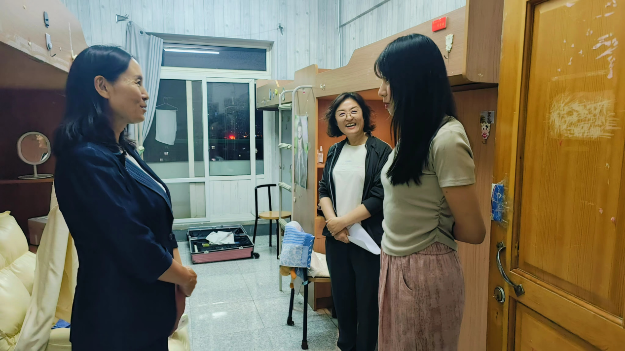 在这次走访活动中,于红与2024届毕业生们开展了互动交流,亲切地询问同学们的学业、生活情况,倾听他们的职业规划、人生理想,对毕业生的未来发展提出建议,耐心地叮嘱同学们关于离校的注意事项。