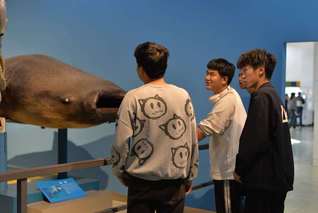 新生们安静、有序地进入博物馆仔细观察。栩栩如生的恐龙骨架、形态各异的海洋生物和植物标本、种类繁多的海螺化石……一件件展品如同一部鲜活的自然史书,引领同学们穿越时空,追溯生命的起源与演变,感知自然界的壮丽与神奇。