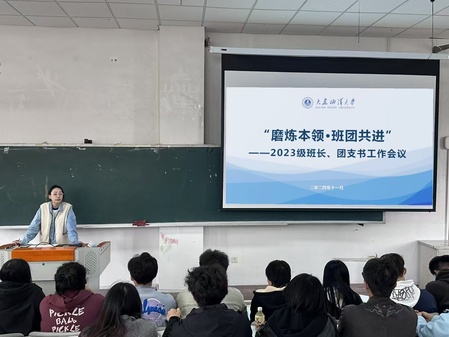 会上,张萌莎就班长、团支书的工作职责进行详细说明,要求各班委严格要求自己,切实履行好工作职责,发挥模范带头作用,做好引领、组织、管理等工作,认真开展优良学风、班风建设,使班级成为团结向上、积极进取的优良集体。在日常学习生活中,提醒班级同学预防电信诈骗、人身意外伤害等,关心帮扶在学业、生活等方面有困难的同学,发挥好桥梁和纽带的作用,积极为班级同学服务。此外,就各班党团工作开展、出行安全等事项作了要求,提醒大家在工作中要认真细致,遇重要事项和问题须及时向公司报备与反馈。
