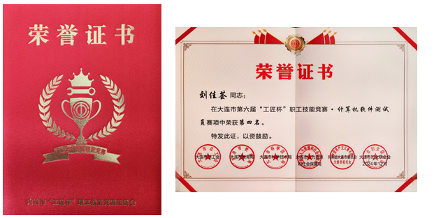 近日,公司数据科学与大数据专业刘佳荟老师在第六届工匠杯暨全市计算机软件技能大赛中荣获第四名的好成绩,大连市“工匠杯”职工技能竞赛组委会为其颁发了获奖证书。