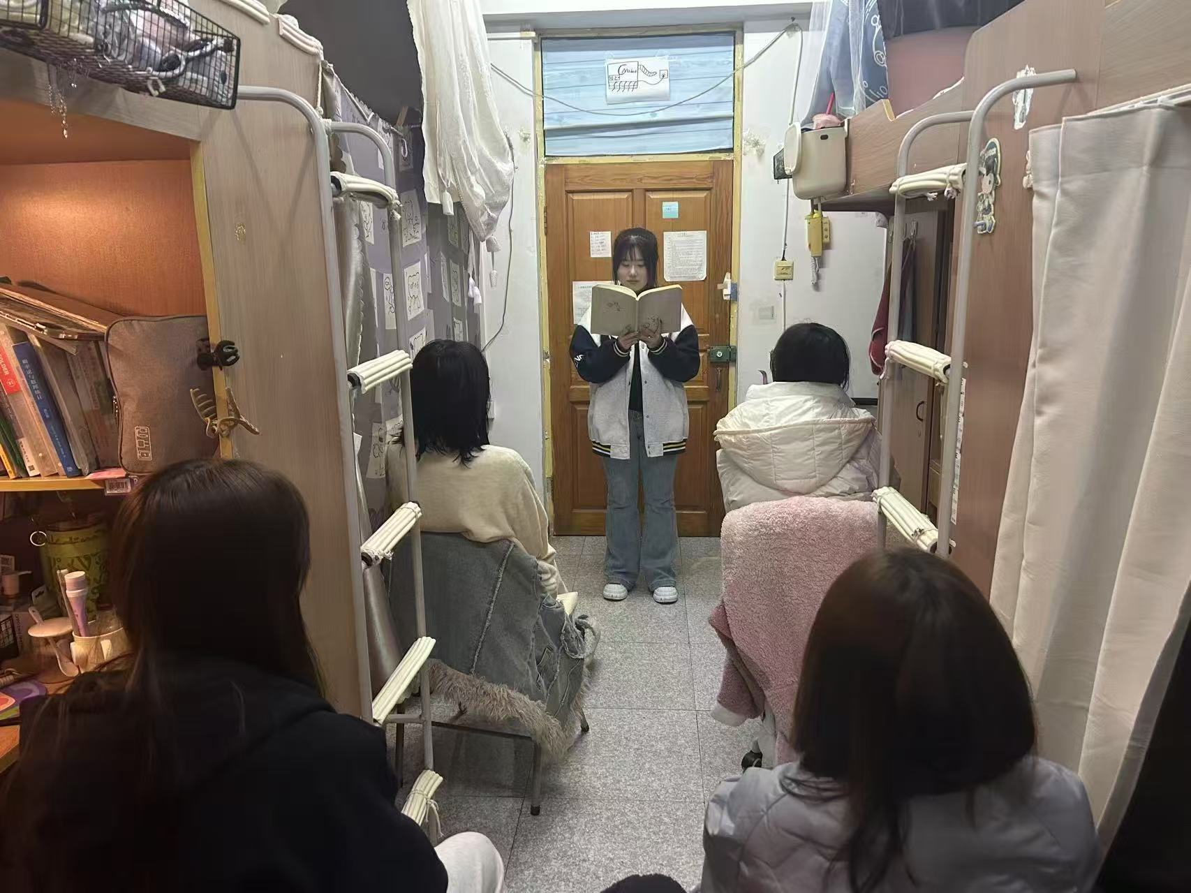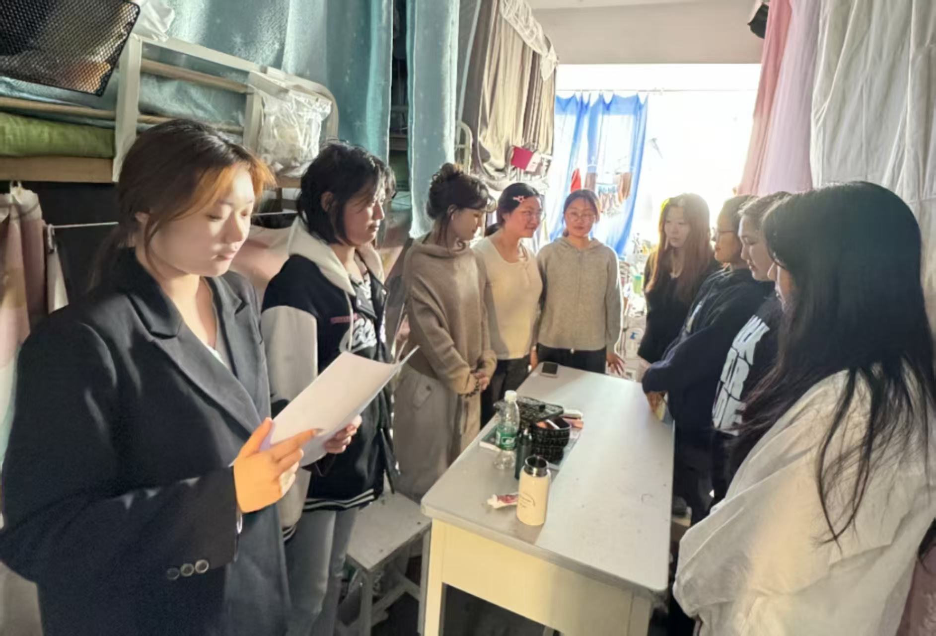 活动中,20余名入党积极分子组成的“红色宣讲团”深入员工宿舍,以寝室为课堂,通过“围坐夜话”的形式,将党的创新理论与书架上的专业典籍、书桌前的学习场景有机融合。宣讲员们用青年视角解读党的理论,让红色故事在同学之间流淌,使党的创新理论在生活场景中具象化呈现。
