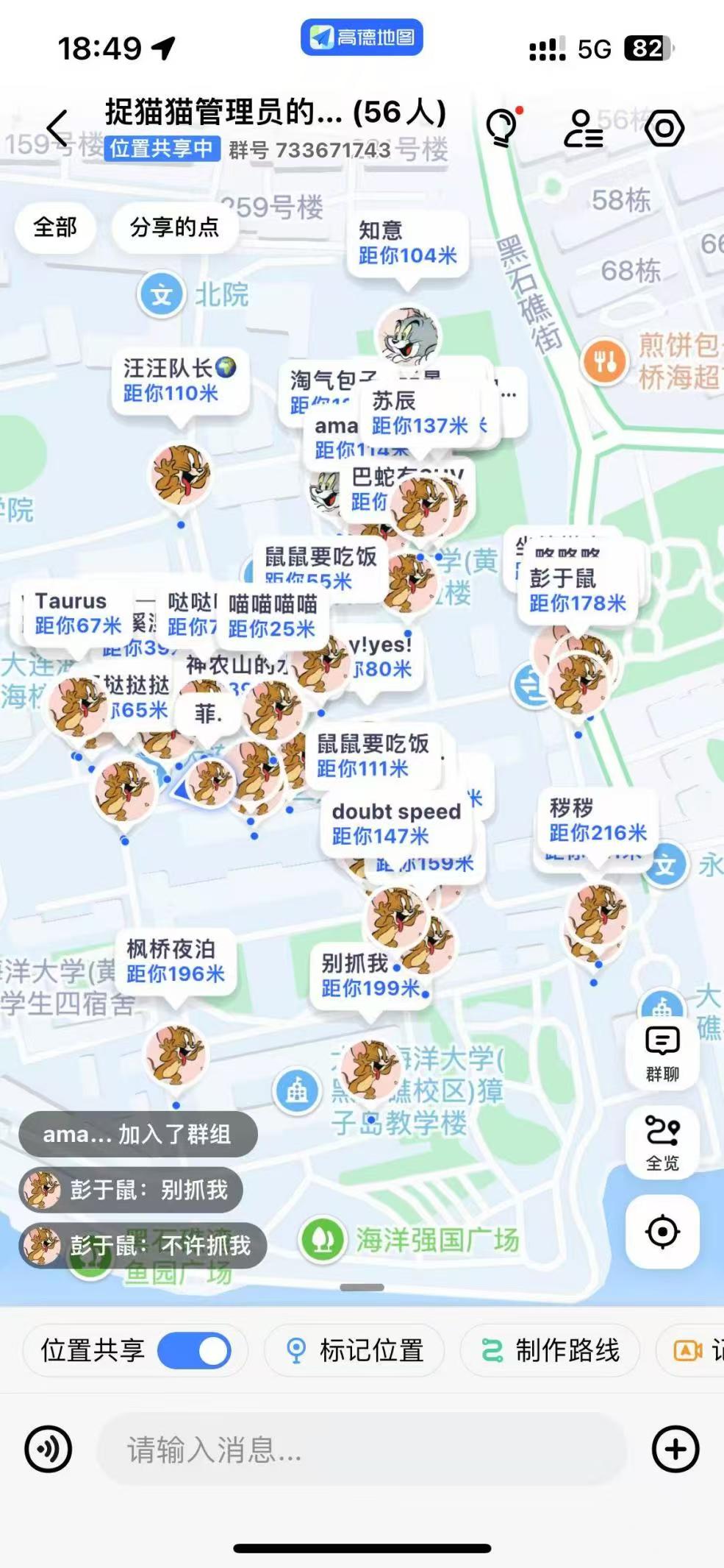 活动伊始,参与者通过抽签的方式被随机分为“猫”“鼠”两队,此次游戏借助了手机定位,为活动增添了趣味性。活动现场气氛热烈而紧张,同学们的欢声笑语回荡在整个校园。通过参与“猫鼠游戏”,同学们不仅在追逐与躲藏中锻炼了身体,增强了团队协作能力,学会如何在面对挑战时保持冷静,以更加乐观、自信的心态去面对学习与生活中遇到的各种困难。