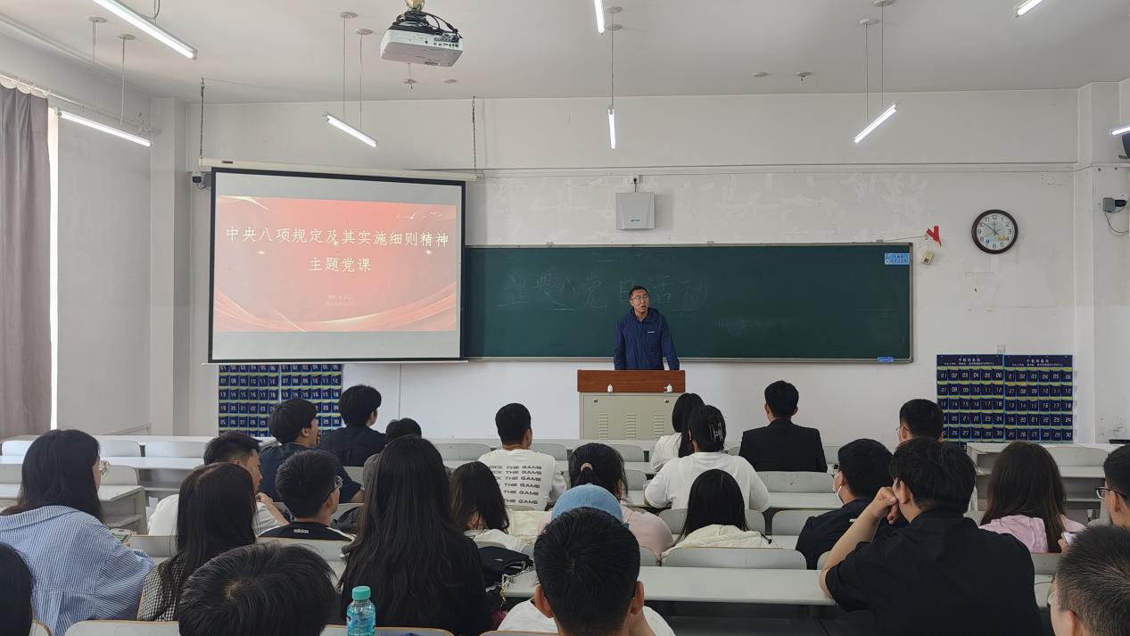 为深入贯彻落实全面从严治党要求,持续强化党风廉政建设,切实增强党员纪律规矩意识,6月11日,太阳成集团tyc122ccvip本科生党支部于獐子岛教学楼132教室组织开展中央八项规定及其实施细则精神主题党课学习。本次党课由党支部书记修恒哲主讲,全体党员参会。
