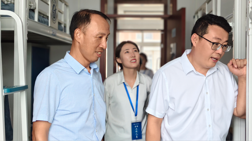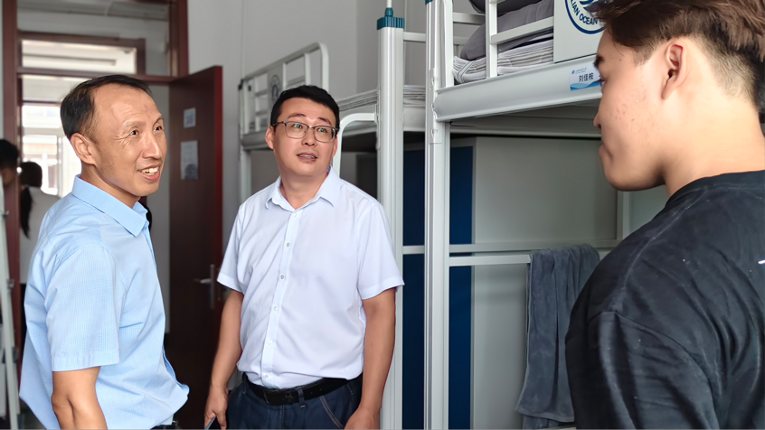 在走访期间,张永春一行逐一走进新生宿舍,细致询问新生的生活安排、饮食习惯和入学感受,耐心解答新生关于学业规划、校园生活等方面的疑问。张永春特别强调人身与财产安全、防范电信网络诈骗的重要性,叮嘱同学们要增强安全意识,共同营造安全、整洁、文明、和谐的居住环境。于洋鼓励新生积极调整心态,互相关心、共同进步,尽快适应大学节奏,树立明确的学业目标,以饱满的热情迎接崭新的阶段。